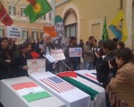 Protesters in Rome and in six U.S. cities say NO to “war as usual”On March 19th, 2010, the seventh anniversary of the invasion of Iraq, USC4P&J organized a sit-in outside the Italian Parliament in Piazza Montecitorio, together with several Italian anti-war groups and two Italian political parties, to call for a withdrawal of all occupying troops from Afghanistan and Iraq as well as an end to all other illegal military occupations in the world, particularly the illegal Israeli occupation of the Palestinian Territories. The sit-in was held in solidarity with similar “Troops Home Now!” demonstrations taking place the following day, March 20th, in Washington, D.C., New York, Chicago, Los Angeles, San Francisco, Seattle and elsewhere in the U.S. These events marked what many activists felt to be a long-overdue revival of the peace movement, lulled into months of apathy by President Obama's promise of a radical change in foreign policy. The Rome demonstrators (just as, the following day, their counterparts in Washington, D.C) stood beside ‘coffins' symbolizing the senseless killing of soldiers and civilians in the various war zones, and held signs giving the statistics of the casualties. Other signs documented the skyrocketing public debt in the U.S. and in Italy due to war. Speakers from USC4P&J and the Italian groups called for an end to Israeli ethnic cleansing in East Jerusalem and the West Bank, plus an end to the siege of Gaza and to the “hidden wars” in Kosovo and in Turkish Kurdistan (a group of Kurdish activists were present with their colorful flags). Thanks to a VOIP connection and the amplification system furnished by a local radio station, the crowd of some eighty protesters heard a brief conversation with Stephanie Westbrook, one of our group's co-founders, who spoke from the John Yoo protest going on in Charlottesville, Va., and a longer conversation with Giorgio Riva, head of a support group for the recently-incarcerated British corporal, Joe Glenton, the first soldier in Europe to refuse to serve in Afghanistan because he judged the war unjust (www.refusingtokill.net). Though somewhat sparsely attended, the sit-in was eye-catching and effective. Hundreds of bilingual flyers were handed out and there was a high degree of collaboration with the various Italian activist groups in getting our message across. Indeed, the groups have already asked us to schedule a meeting after Easter to plan a follow-up event. In the U.S., the march on the Capitol boasted a large turnout. Some 10,000 protesters converged on the White House in the biggest peace demonstration since the announcement of the escalation of the Afghanistan war. Contemporaneous demonstrations in San Francisco and Los Angeles drew 5,000 and 3,000 people respectively. One of the distinctive (and very positive) features of these events was the large turnout from high school students, college students and other young people, including those in the armed forces. The call to protest managed to mobilize a new generation of U.S. activists! The protests in Washington, D.C., and the West Coast received coverage in the main newspapers of the three cities where they took place. Other newspapers across the country, however, reported either nothing or an AP article which minimized the protests. It played down figures for the larger turnouts and played up the small turnout for the New York sit-in, which was organized at the last moment. In addition many newspapers found space for another AP article on the anniversary of the invasion of Iraq, which described a “lack of public interest” in the wars nowadays and a sharp drop in the number of anti-war protesters. The article mentioned the demonstration in downtown Milwaukee, obviously minuscule, but failed to mention the larger marches elsewhere. All this clearly intended to “massage” the facts and portray peace activism as a movement on the wane. Even more evidently manipulative was the behavior of officials in the cities where protests took place. In Washington, D.C., the Department of Public Works ordered the posters announcing the forthcoming march to be taken down. Since peace groups have few funds for billboards or media advertisements, posters are their principal means of communication and the actions of city officials clearly served to lessen public awareness. In Los Angeles and the Bay Area, police arrested activists for putting up posters outside of paid billboard spaces, charging them with a felony offense and releasing them only on incredibly high bail of $20,000. In San Francisco, the park authorities made activists pay a $12,000 fee to use a public park which, up to then, had been used freely for public events, including demonstrations. Not to be discouraged, the U.S. peace activists went ahead anyway and held several very successful and well-attended protests. USC4P&J therefore considers March 20th an important step forward in re-launching the anti-war movement. It is vital that we continue to build on this momentum in the months ahead. We will be counting on you to become more involved in future actions and to speak out against the brutality and senselessness of war – as well as the huge cost, both financially and in human life and dignity. It is urgent to do so NOW. With the election of Barak Obama, the military-industrial complex has not suddenly reconverted into a green-industrial complex. Recent newspaper reports have given activists reason to worry even more about the Obama administration's foreign policy intentions – in particular the hints that withdrawal from Iraq might be only partial (garrisons of U.S. troops would remain in the Iraqi countryside) and that the programmed withdrawal from Afghanistan could in fact take as long as ten years to complete. “We cannot accept that people get used to the idea of ‘permanent, preventive wars' and ‘war as a way of procuring resources'”, said one of the bi-lingual handouts distributed at the Rom
