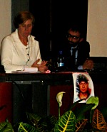 Cindy Sheehan - Alternative VoicesOn Monday, February 6th, Cindy Sheehan returned to Rome to participate in a week long event promoted by Le Monde Diplomatique and Il Manifesto. The series of seminars was titled, "Voci della resistenza, voci dell’alternativa" and was held in the Sala della Protomoteca del Campidoglio and the Architecture Faculty of Roma Tre University. The Mayor of Rome, Walter Veltroni opened the conference along with Gino Strada, of Emergency and Gianni Minà, editor of the magazine Latinoamerica. Cindy Sheehan was able to share with the participants her recent experience in Washington, D.C. at the State of the Union address. She was invited to attend President Bush’s speech, by Congresswoman Lynn Woolsey. Ms. Sheehan arrived early and was in her seat by 8:30 pm, a half hour before the event was due to start. She was feeling warm and so took off her jacket, not remembering that she was wearing a t-shirt stating the number of U.S. service people who had died in Iraq- 2245. Within a minute, a guard shouted “protester” and grabbed Ms. Sheehan from her seat quite roughly. Sheehan reported that she still felt sore and had bruises from being pushed out of the room, handcuffed and taken to a police station to be arrested. She was held for 3-4 hours. Two interesting facts that Cindy Sheehan pointed out was that when CNN reported the story they used an “archived” photo of her from an earlier protest, where she was unfurling a banner with an anti war slogan on it, and used that photo with this recent event, to give the impression that that was the reason she was removed from the State of the Union address and arrested. She went on to explain that five corporations own/control most of the nations’ media industry and she thought this was just another example of how the truth is manipulated in present day U.S. She also pointed out that there was another woman at the State of the Union address with a "political" t-shirt supporting the troops but she was merely escorted out of the assembly and not arrested, though resisted and also called the officers "idiots". Sheehan was not convinced that citizens opposing the war were having their freedom of speech protected adequately. Gino Strada referred to the title of the night's session, Peace and Democracy. It is his opinion that we've become too attached to the word "democracy." He didn't see its relation to peace. He noted that the major wars in the past decades had always been instigated by democracies. And that the simple act of voting has become proof of democracy. He suggested that we instead concentrate on "participation." About ten members of U.S Citizens for Peace and Justice attended this opening session of the conference. We were able to exercise our freedom of speech and brought in our “Impeach Bush” signs, our U.S. Peace flag and one member was even wearing a t-shirt with an image of Bush with the words, “International Terrorist” written. Many of us were able to meet and exchange comments with Ms. Sheehan. When we told her about getting our “Stop the War” message on the NBC Today show earlier in the afternoon in Piazza Navona, she was quite complimentary and encouraged us to keep up the good fight. Kathy Ford |