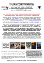 The USC4P&J documentary films series, Eyes Wide Open, continues in its 19th season with a series of films on alternate Thursdays, October 20, 2016 through June 8, 2017.