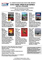 Eyes Wide Open Film Series, Part VIIIThe USC4P&J documentary films series, Eyes Wide Open, continues in its 8th season with a series of films every other Thursday through December 2008. Films will be screened in English at Circolo Arci Arcobaleno (via Pullino, 1, metro Garbatella - see map and directions) Doors open at 7:30pm, screenings start at 8pm followed by a discussion. Arcobaleno provides the possibility of drinks and/or a light dinner before or during the film. We ask for a small donation to help cover costs of DVDs and shipping. Arcobaleno requires an annual membership card at 5 Euro/year, which also includes discounts at museums, shops, theatres, etc. The program for the series through December 2008 is as follows: