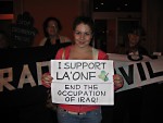 Supporting La'Onf in Rome, ItalyOn October 29th, U.S. Citizens for Peace and Justice - Rome participated in a vigil organized by Donne in Nero at Largo Argentina, in support of La'Onf. (See original appeal) La'Onf means “no violence” in Arabic and it is the name of a movement in Iraq that has been organizing various forms of non-violent resistance for the past three years and is supported by a number of international groups. The vigil started at 6.30: a group of Donne in Nero stood in a line outside Feltrinelli bookshop holding a banner that read: NO ALLA VIOLENZA IN IRAQ. Stephanie and Anna held the USC4P&J banner that read: OVER ONE MILLION CIVILIAN VICTIMS IRAQ. Jane, a British member of Donne in Nero, went around giving out flyers to passers-by. La'Onf had asked international supporters to send photos expressing solidarity with their movement. Anna, Stephanie and Maria Chiara, with different ways of approach (timid, straight, determined) managed to convince people to have their photos taken while holding a poster which read: I SUPPORT LA'ONF – END THE OCCUPATION OF IRAQ. On the whole, people were responsive, though some refused to have their photos taken; were they concerned about privacy? Or was it fear? But most, especially the younger ones, were happy to cooperate with us. Italians, including a journalist and a senator, as well as people from many different countries, showed their support of La'Onf. A group of young Serbians were clearly excited about having their photos taken. A Finnish tourist said, “One should always find the time to be against war.” And two groups of students from the U.S. were particularly pleased to have a chance to express support of the Iraqi people. On the whole we took 37 photos and gave out about 200 flyers explaining, both in Italian and in English, the motives and aims of the vigil. Once the vigil was over, we folded up our banners and walked away, happy to have contributed to this action for peace in Iraq. Maria Chiara Starace You can send your own photo in support of LaOnf to: laonfsolidarity@yahoo.com (see photos that have been posted) And sign the international letter of support. |