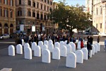 Control Arms Petition at Piazza Chiesa NuovaNovember 12, 2005 Members of our group joined the campaign Control Arms in Piazza Chiesa Nuova collecting photos for the Million Faces Photo Petition calling for an international arms trade treaty. The following is Tom's account of the afternoon and below is Ilaria's in Italian as well as a poem by Daniela: Control Arms Petition at Piazza Chiesa NuovaA cool, but pleasant day it was last Saturday, the 12 th of November, doing “good works” for the world by gathering signatures and photographs in Piazza di Chiesa Nuova. Twenty-eight large, and visually striking, styrofoam tombstones were marked with statistics related to tragedy: T he lack of control of the arms trade contributes to conflict, poverty, and human rights abuses worldwide, and every government is responsible. Recently, UN Secretary-General, Kofi Annan stated, “…the excessive accumulation and illicit trade of small arms is threatening international peace and security, dashing hopes for social and economic development, and jeopardizing prospects for democracy and human rights.“ The effort Saturday’s work, gathering one million signatures by next spring is the idea of Control Arms supported by Oxfam, Amnesty International, and a group of more than 500 NGOs in the International Action Network on Small Arms (IANSA). Together, they are calling for a global Arms Trade Treaty to bring the international weapons trade under control. The Rome effort was part of a regional event, Le piazze del Lazio contro le armi, organized by the Rome coordinators for the ControlArms campaign and with the participation of local associations, including our own, U.S. Citizens for Peace and Justice. We gathered 288 of signatures and photos in about 8 hours of meeting and encouraging people to join us in our work. Personally, I was a bit hesitant being only an American English, non-Italian, intermediate-level Spanish speaker, but, Hey! It was actually easy – my first signers spoke only Italian, and the next two were Hungarian! That was a nice boost… and with a blend of pidgin-English, glossed-up Spanish and help with the excellent flyer, any resistance was frequently overcome. Peace is beyond language and culture. Quite frankly, weapons control is such an obviously good thing, difficult as it may be to achieve, and such a no-brainer, support was not too difficult to arouse, if only there were willingness to listen among the passersby. The greatest limitation was resistance to be photographed; however given support by Amnesty International and Oxfam, this frequently helped overcome reluctance. Others seemed to be too tourisically busy, and others performed quite surprisingly impressive and effective avoidance behaviors! Question: Who benefits most from small arms sales? Doing a bit of research at the Control Arms website, I find that it’s the five permanent members of the UN Security Council – the USA, UK, France, Russia, and China who benefit. Together, they are responsible for eighty eight percent of reported conventional arms exports. Why shouldn’t peace generate greater benefits than war? Why can’t these countries export peace? Next year, the United Nations will hold a conference and the intention for the signatures and photographs is to display over one million images of people showing support for controlling the sale of arms. The count is around 400,000 today – Six months to go, so if you haven’t yet signed and added your photo, you can do so online at www.controlarms.org Arms are so prevalent, for example it is estimated that there is one gun for every 10 people on the planet, including children, and half a million men, women and children are killed by armed violence. That’s about one person every minute. We had three celebrities sign on with us, which was nice… Silvio Orlando, Stefano Masciarelli and Silvio Vannucci. Stephanie successfully encouraged SilvioVannucci to sign the petition and be photographed, but didn’t know who he was at the time. Who knows how many other “notables” we included... All in all, a successful day, and pizza for a snack was a nice break. Marco stayed late to help out till the end as it took three trips to carry away the tombstones… Thanks, Marco! And thanks to everyone who helped out and to all those who added their photo to the petition. Tom Fieselmann CRONACA DA UNA DELLE PIAZZE DEL LAZIO CONTRO LE ARMISeduti tutt’intorno al tavolo di Casa Pace, durante la riunione del coordinamento locale per la campagna Controlarms, davanti al vassoio di pizza alle olive che aveva portato Piero. E’ lì che è nata l’idea della giornata “Le piazze del Lazio contro le armi”. Abbiamo scelto tutti insieme di realizzare in un unico giorno nelle piazze di Roma e del Lazio, tanti “check point” ove raccogliere le foto- adesioni alla campagna Controlarms. I preparativi sono stati come al solito frenetici: le telefonate, gli incontri, le e mail organizzative, la preparazione dei materiali, i contatti con la stampa. Ci siamo divisi i compiti e tutti noi li abbiamo portati a termine, ognuno con la sua passione e dedizione. Finalmente arriva il 12 novembre. Siamo in 6 città del Lazio e in dodici piazze a Roma. Siamo un centinaio di volontari fra Amnesty Lazio, Rete Italiana per il Disarmo, US Citizens for Peace and Justice, CGIL Lazio, associazioni locali e persone che hanno dato tutto il loro entusiasmo e la loro operosità. Scattiamo le foto a chi VUOL METTERCI LA FACCIA. Stiamo raccogliendo un milione di foto in tutto il mondo: le esporremo in una grandissima galleria nel luglio 2006 a New York, in occasione della Seconda Conferenza dell’Onu sui Traffici Illeciti di armi leggere, per chiedere ai governi di tutto il mondo l’adozione del Trattato Internazionale sui Trasferimenti di Armi, finora sostenuto da 20 premi Nobel per la pace e da una quarantina di stati. Abbiamo obiettivi puntuali e ci crediamo proprio in questo Trattato. Un Trattato inter